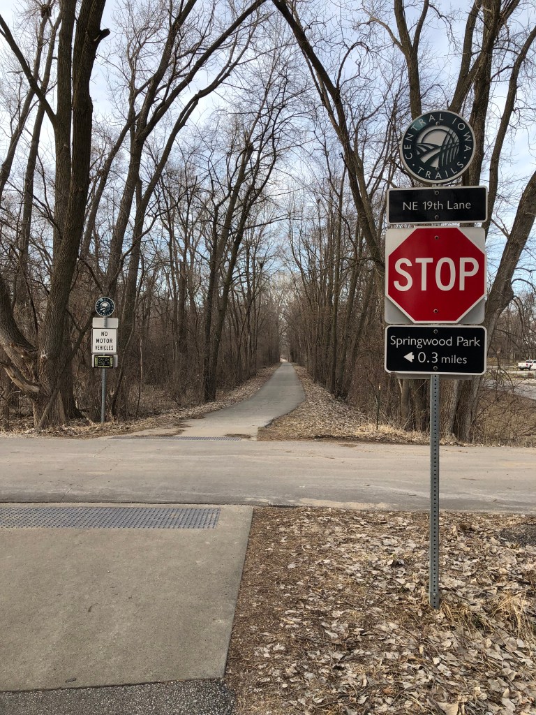 This was an unexpected find. I was planning to run at a local high school, but there was track practice. The middle school track across the street was all locked up. A paved trail around a lake on the nearby community college campus looked promising, but it was all permit parking. There was an overpass right by the hotel. It looked like a reclaimed railroad. I drove back a different way from the schools and saw it was a newly paved path.