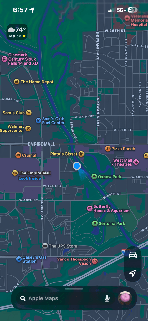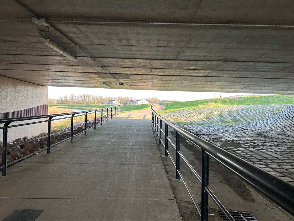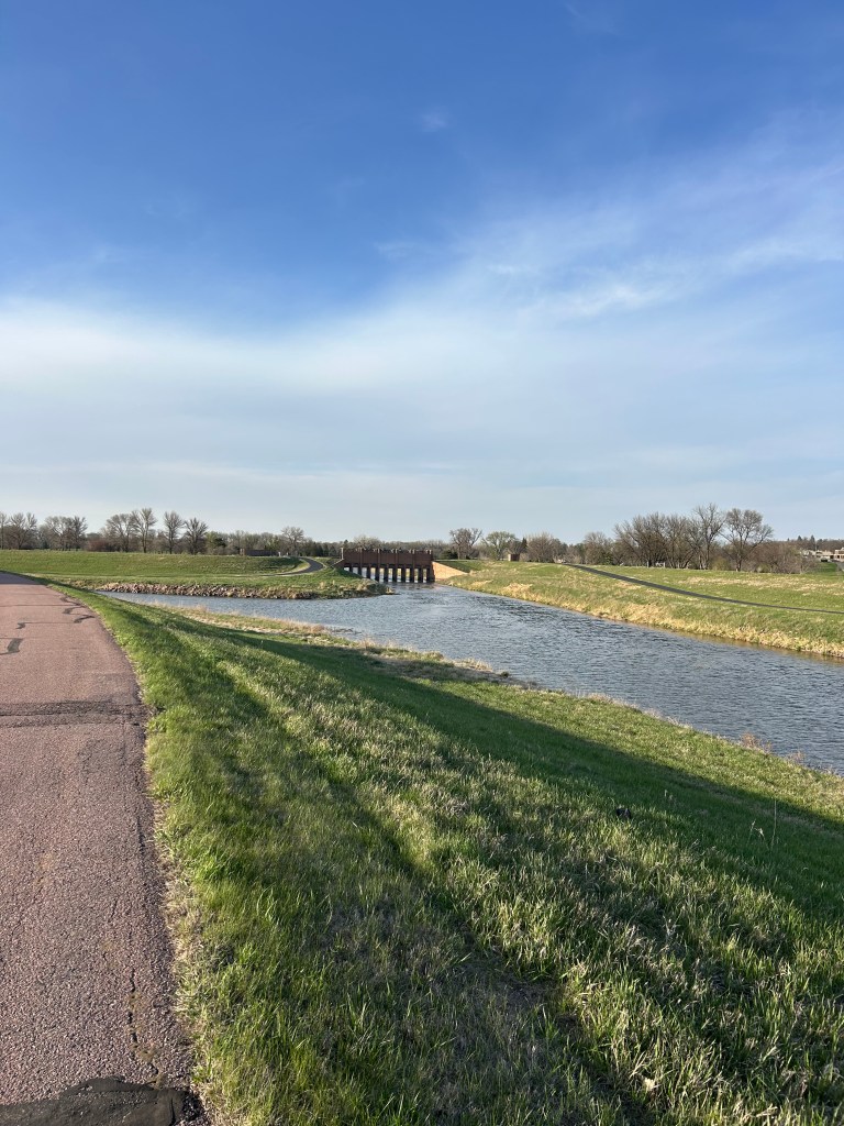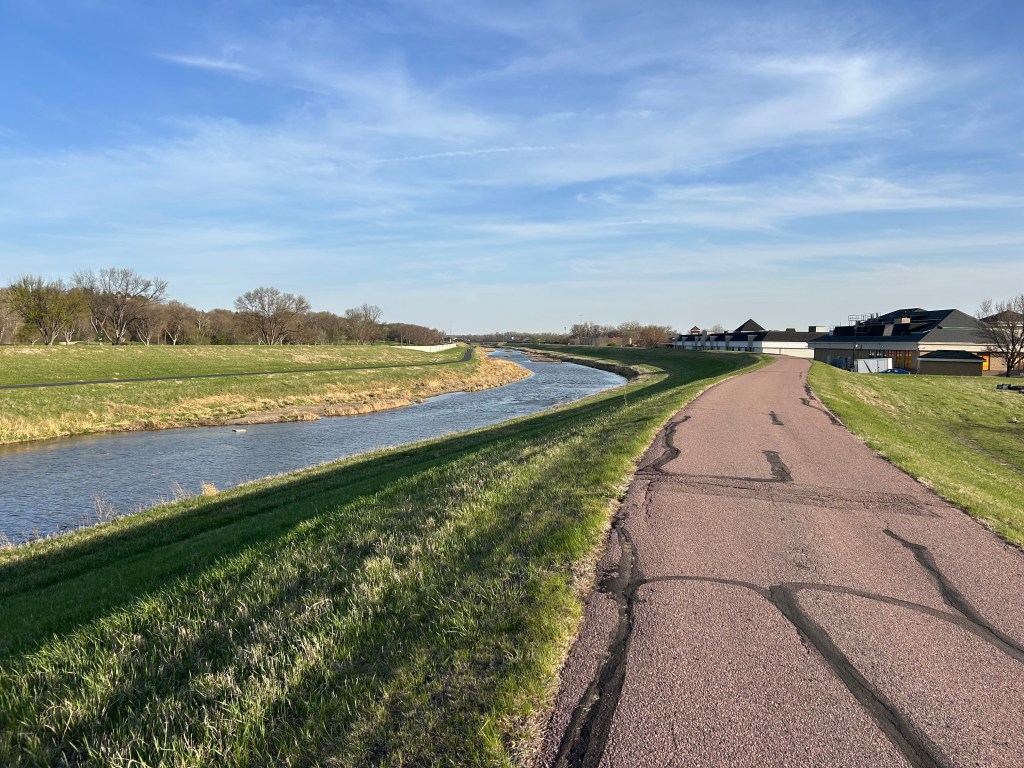 This was not my first run down the old Sioux Falls Bike Trail. I was here last year and stayed at the same Holiday Inn Express and made the same walk across the same strip mall to the same river bank. This time I ran east, rather than west, and I stayed in the open air and out of the trees. A glorious day for running.