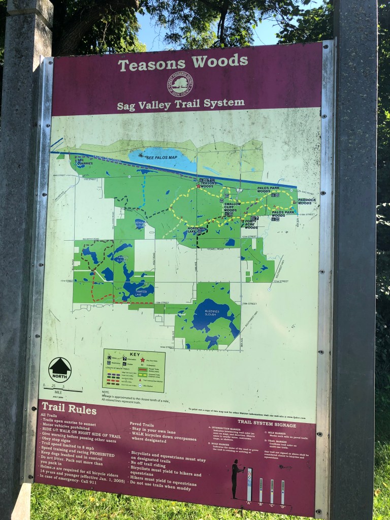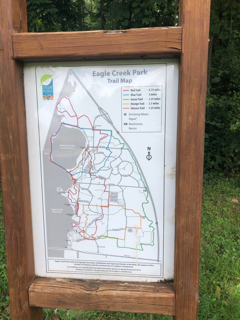 I actually wandered onto the blue, orange, yellow, and pink trails, not just the red, though I spent most of my time on the red trail. There were some switches and road stretches that confused me at first, as well as some muddy spots that I avoided and circumnavigated. Once I got a little off-track, the overall distance of the red trail was not feasible, so that contributed as well.