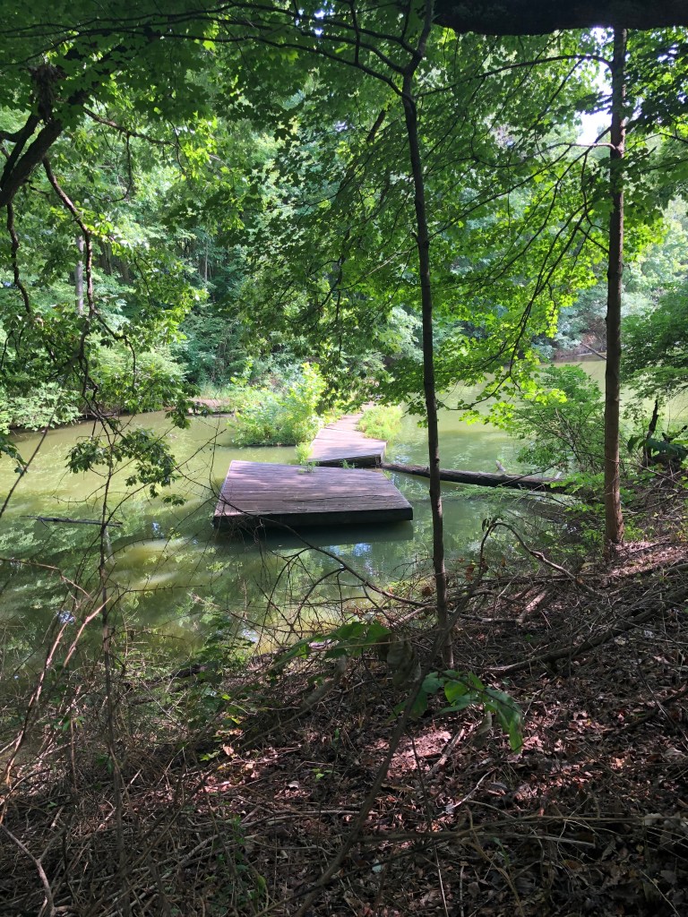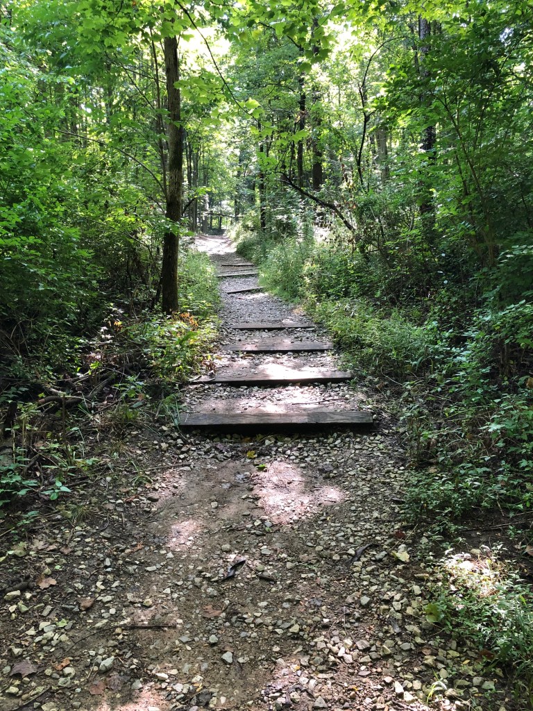 Some of these trails were not ideal for running. There were tree roots and embankments and slippery old wood stairs, and it was shaded enough that I ran without my sunglasses on most of the way to avoid disaster. Again, though, the tree canopy was a godsend, as it cut about 10 degrees off the hot and muggy temperature.