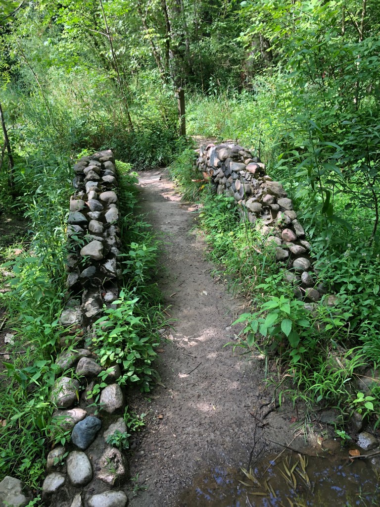 Hot and muggy, but this was a great trail. A little too long to make the full loop, so I ran out-and-back to the west about a third of the way. Maybe 8 hikers on the loop trail total. No pavement other than an occasional stream bridge. Tree canopy cooled it down several degrees. Elevation changes made it more challenging and varied.