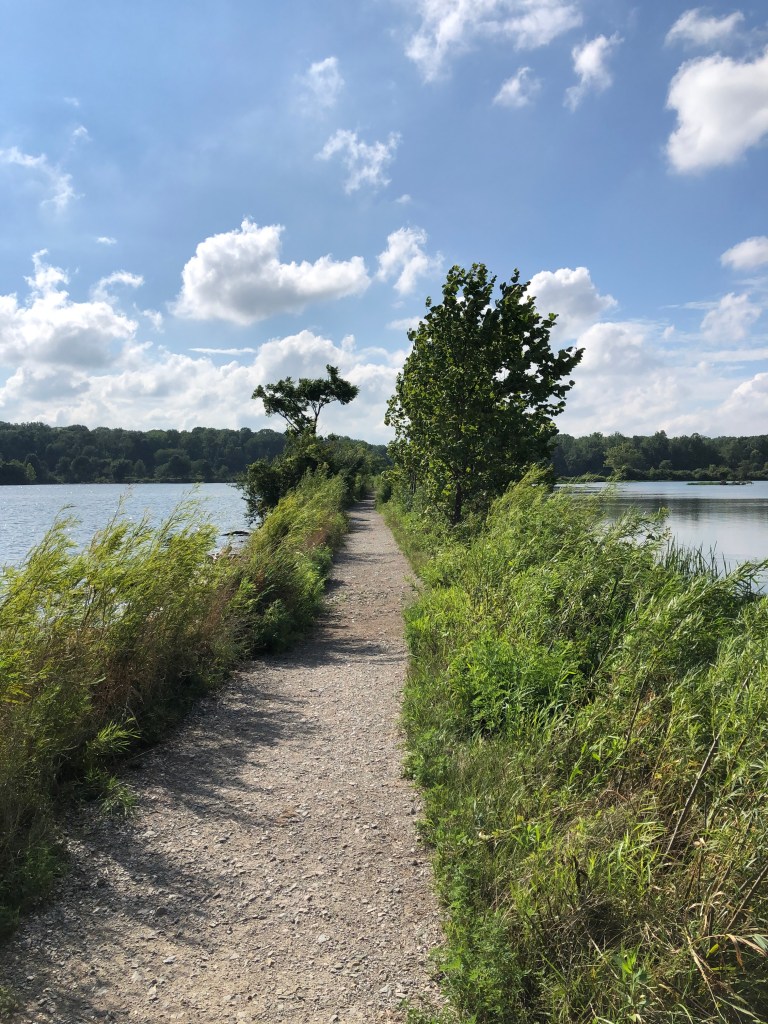 The map makes it look like the trail has you running through the middle of the lake. I made sure to get to this section, and it did not disappoint. There was a strip of land just wider than the trail running all the way across the lake. Spectacular. There were a few people out there fishing or just enjoying the day – it was a hike to get that far, so not many people.