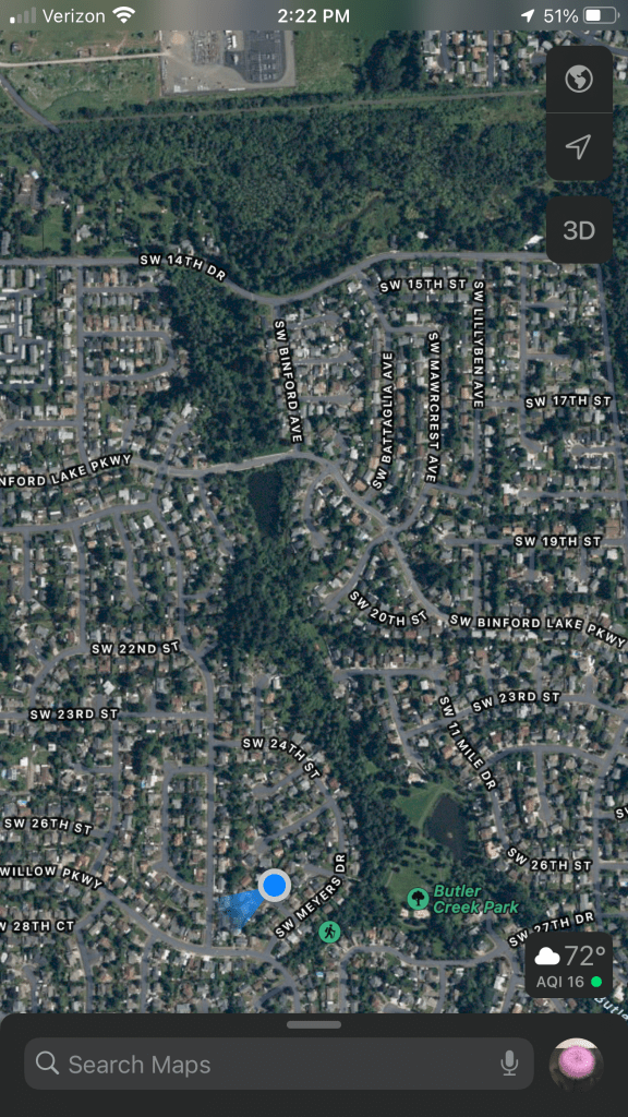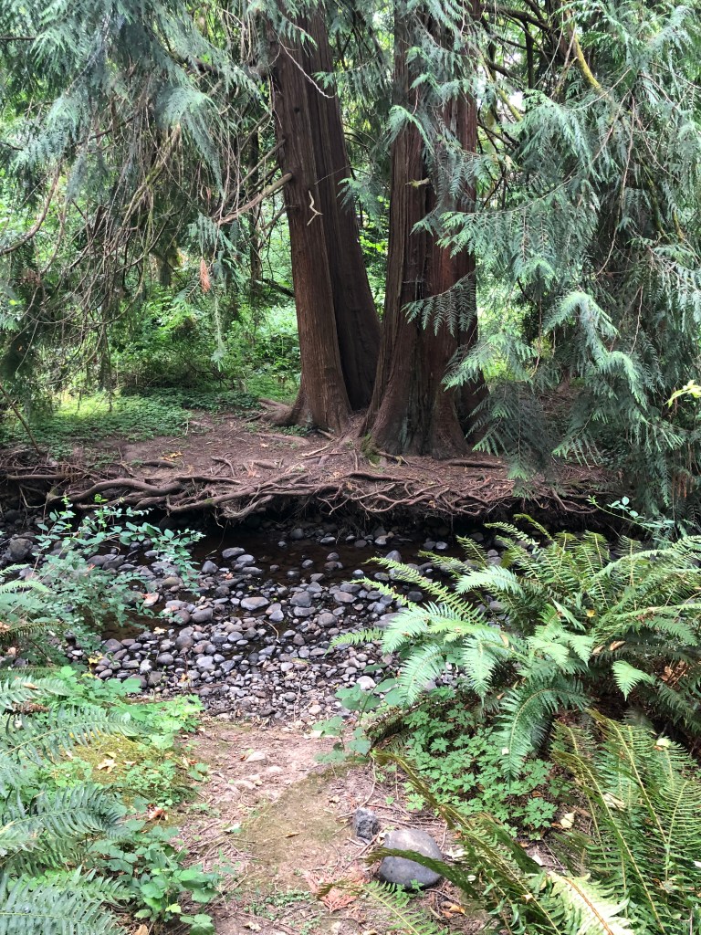 Back in the Hood ‘hood one last (?) time. Stayed at the Quirke’s in the Highland neighborhood. Butler Creek was just a couple of blocks away. I found the trail (non-paved) that snakes along the creek and ran it down to the Springwater Trail and back up. Beautiful run. It was cool, and the terrain was varied. Some good inclines, which were challenging both ways.