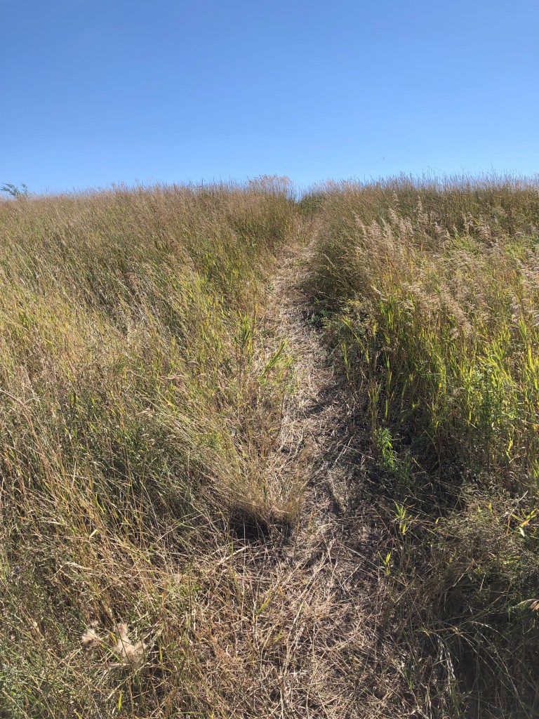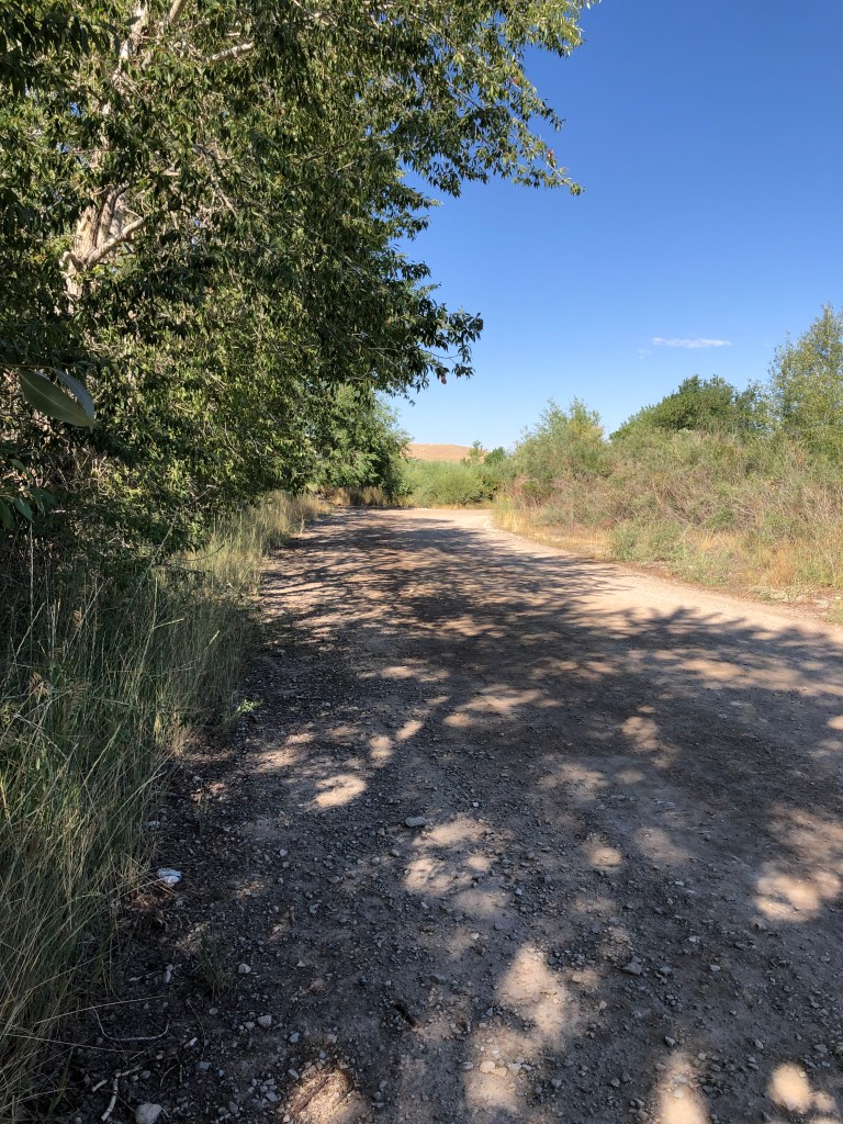 Occasionally I would have to step aside for a motorcycle or ATV, but I didn’t mind. They kept the loop flat and unfettered by vegetation. There is always room for shared use. A local goat herd sometimes would be feeding, tended by a goatherder in an orange vest. Last fall I saw the same feral cat a few times, with cockleburrs stuck in his fur. I never saw any deer, though I sometimes saw tracks. The geese and ducks were in and around the lake all spring and summer. I saw nests of eggs in spring, followed by families of mother and baby geese. I saw a few snakes, and evidence of more in the dust of the road.