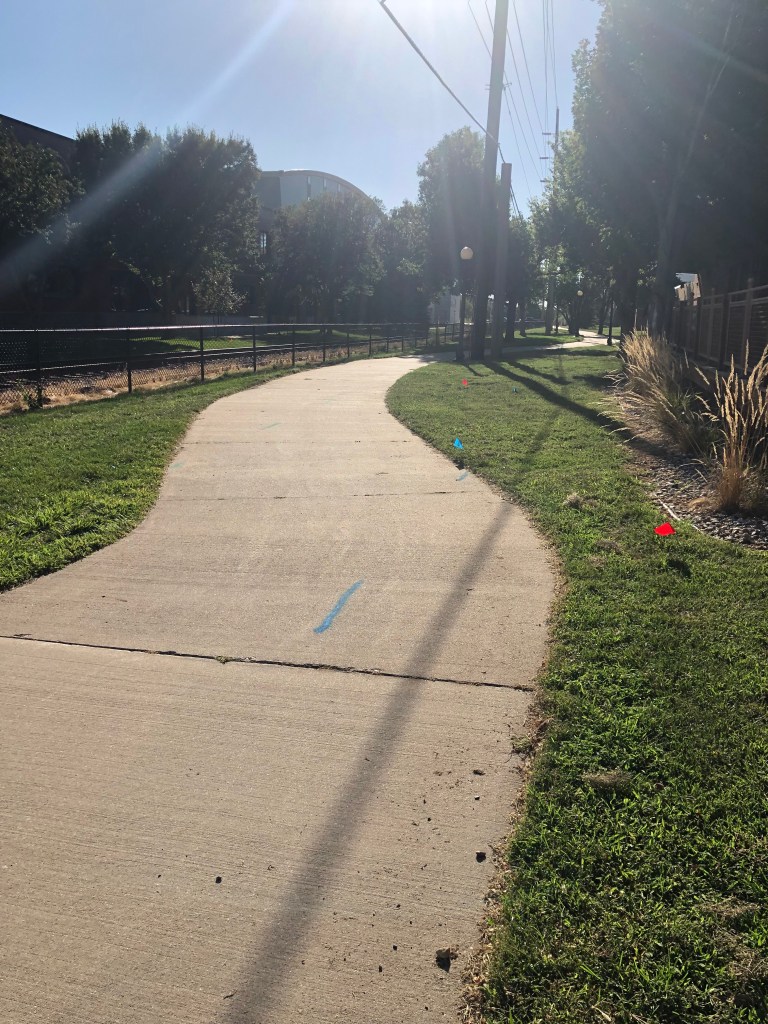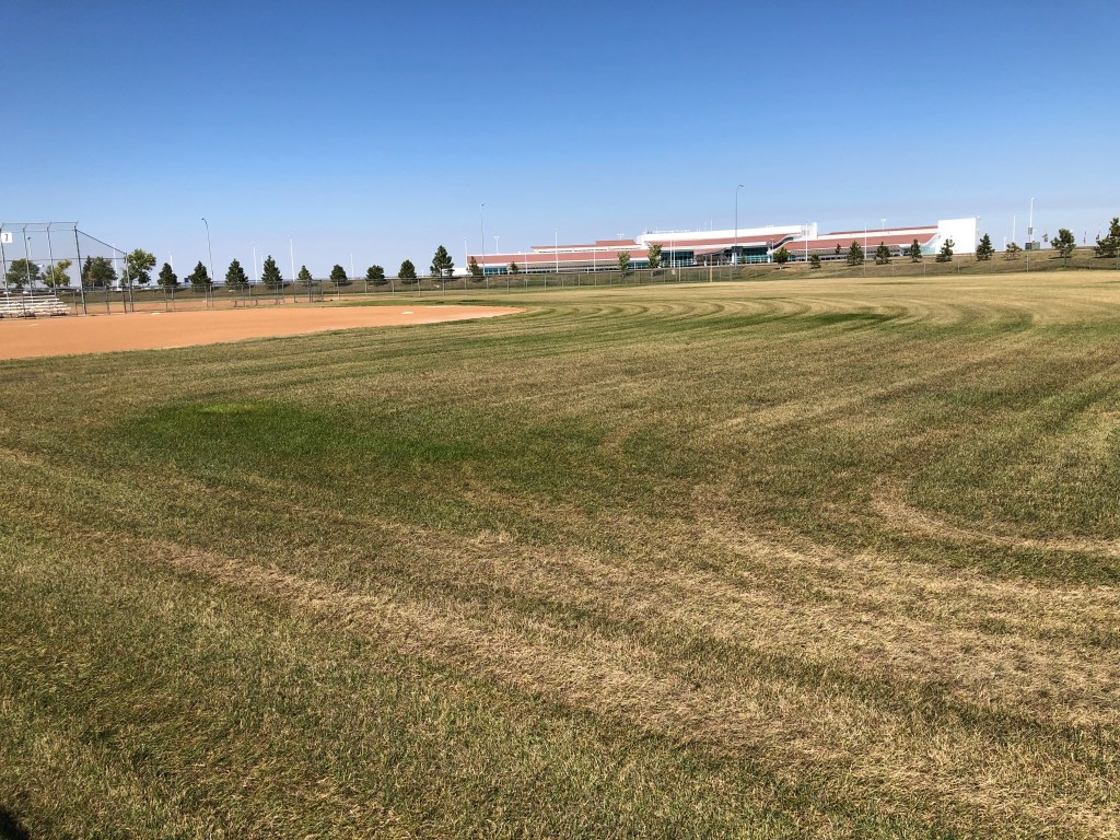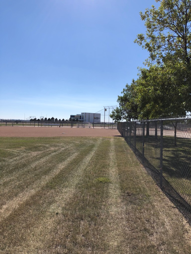 It made for a nice run. Very flat, and the grass was cut relatively low. It looked like there have been some teams running laps around the perimeter as well – you could see a defined trail along the inside of each outfield fence. I was a fair distance from any traffic – if you can call what Minot has traffic. It was a sunny, breezy, beautiful North Dakota day.