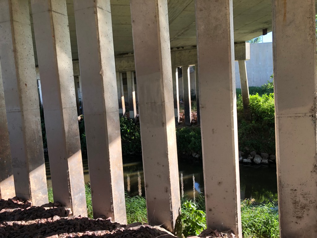 The trail crossed Perry Creek a couple of times, and dove under cross streets at most intersections. I ran along unpaved connecting sections of the dike on either side of the creek to stay off the concrete. This led to unplanned excursions through empty fields and old neighborhoods and fast food parking lots.