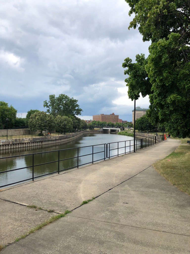 This trail started near downtown Flint, which was basically a ghost town. There were a few people fishing in the Flint River, which somehow found a cement channel to run through. The trail ran through Kettering University, which also seemed almost empty. A rain shower came through and cooled me off, which was nice.