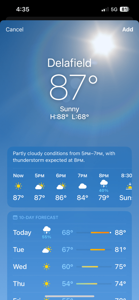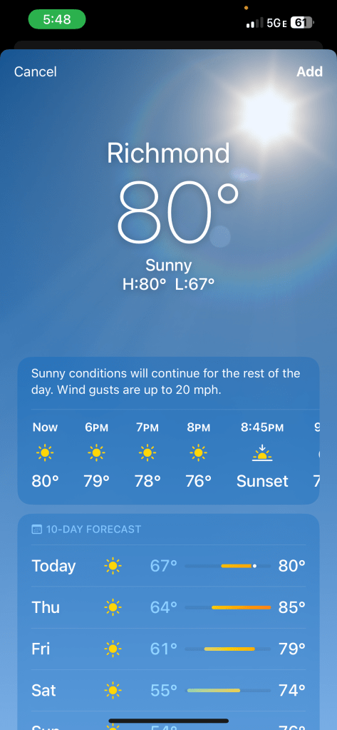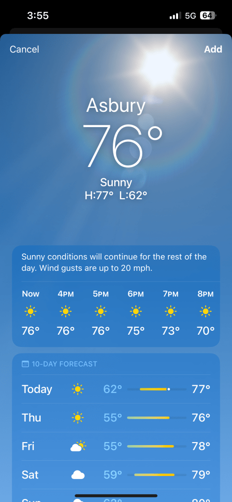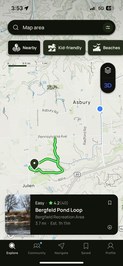 I walked farther than normal at the start of the run, and I did a poor job judging where my turnaround point was, so when I got back to car, I still had time to run. However, I had passed the same family three times on the trail already, and did not feel like disturbing them again, so I just stopped short of my full time. It was fine. This run was not just for my physical health.