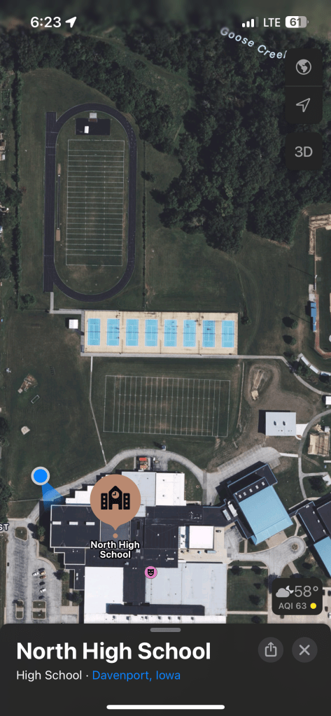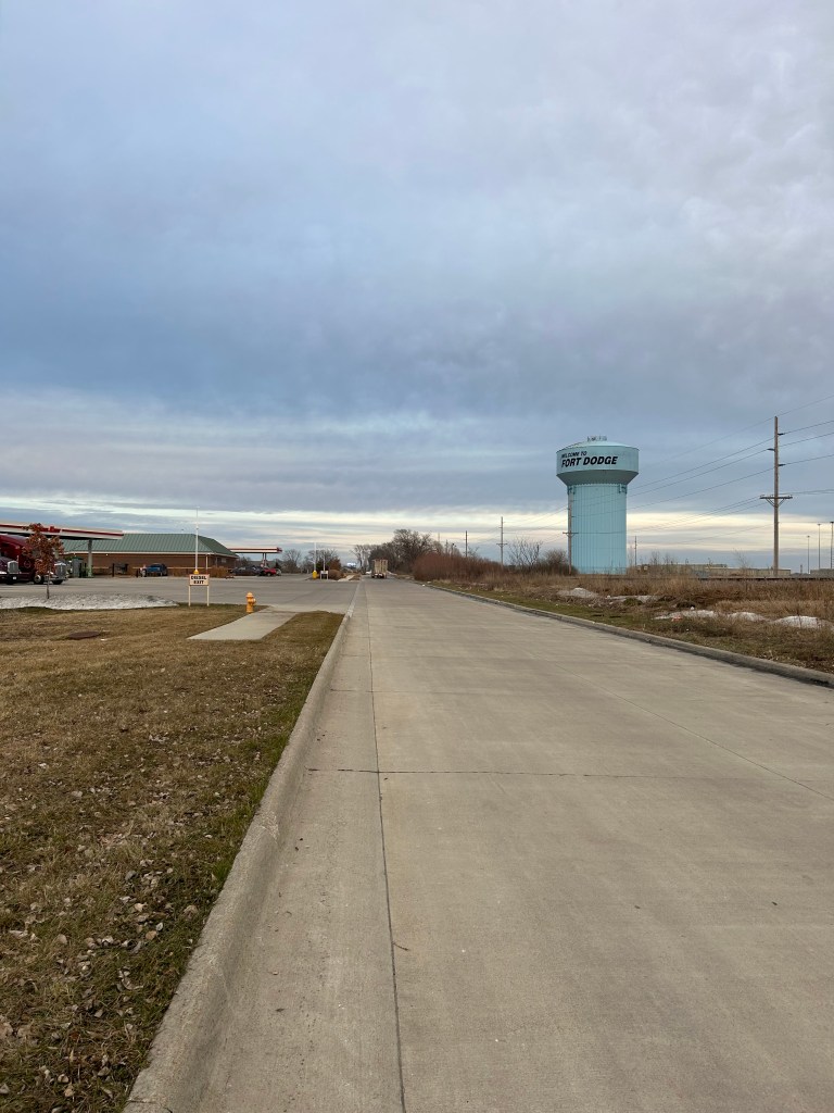 Esterhazy is a small Canadian town where one of our distributors has a two-person outpost. It is near the western border of Manitoba, where I had spent most of the day in Winnipeg and Brandon, on my way over to Saskatoon and Regina. My stopover in Esterhazy was pleasant. There are potash mines near Esterhazy, and our distributor sells various fittings and tools to the contractors working at the mines. I stayed at the Canalta Hotel, which was delightful — clean, quiet, friendly staff (the hotel clean and quiet, the staff friendly). The high school was just a half-mile away or so, with sort of a cinder mud track that was soft but kept me mostly above ground as I lumbered through a full run.
